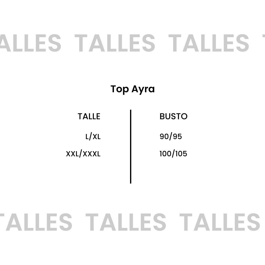 El Top Ayra es tu aliado práctico y económico para entrenar o usar todos los días. Con un diseño simple y funcional, ofrece soporte ligero a medio, ideal para rutinas de baja a media intensidad, o para estar cómoda en tu día a día.