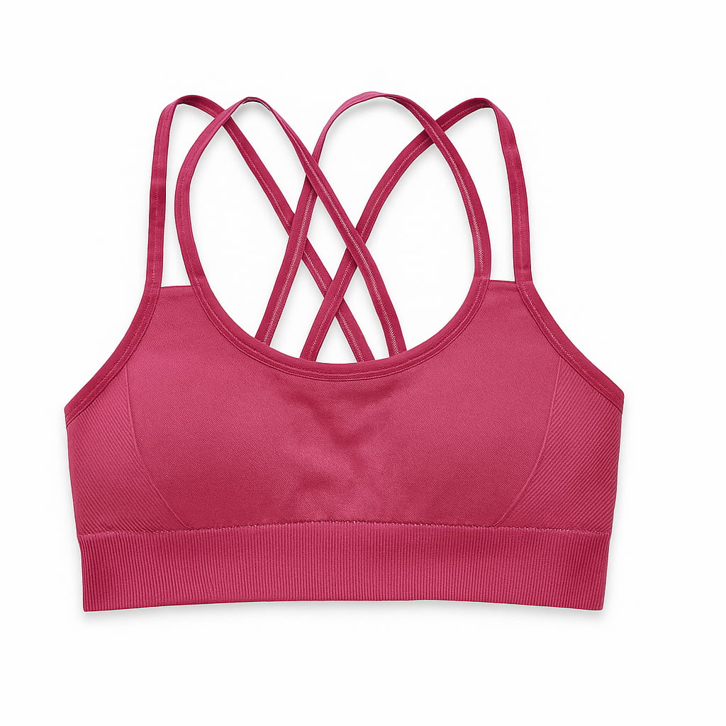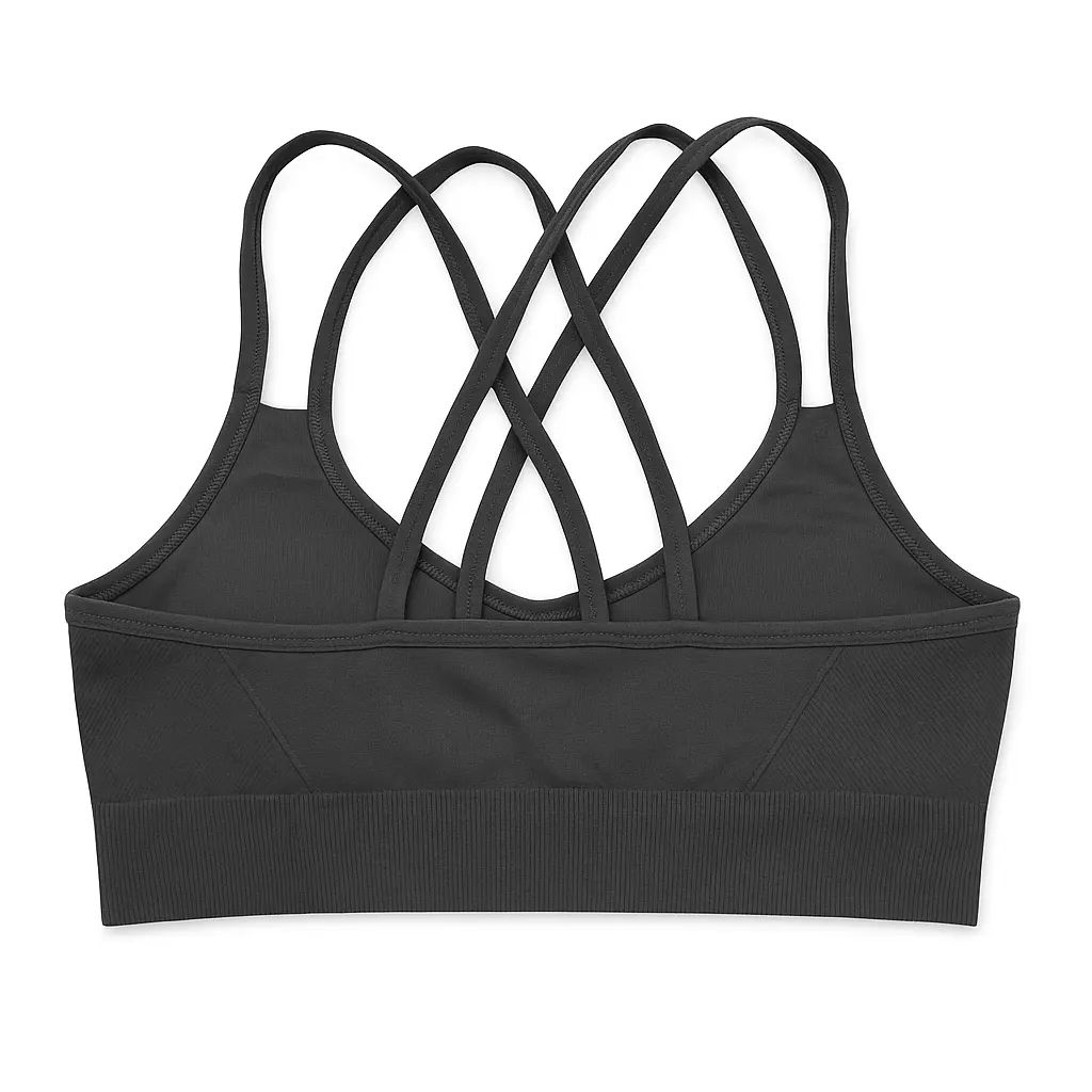Su espalda cruzada con múltiples tiras no solo aporta estilo, sino que también brinda mayor libertad de movimiento. Está confeccionado en una tela de calidad intermedia que resulta ligera, cómoda y con buena elasticidad.